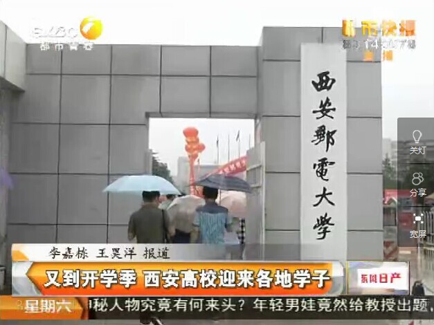 2014年8月30日 陕西电视台《都市快报》:又到开学季 西安高校迎来各地学子