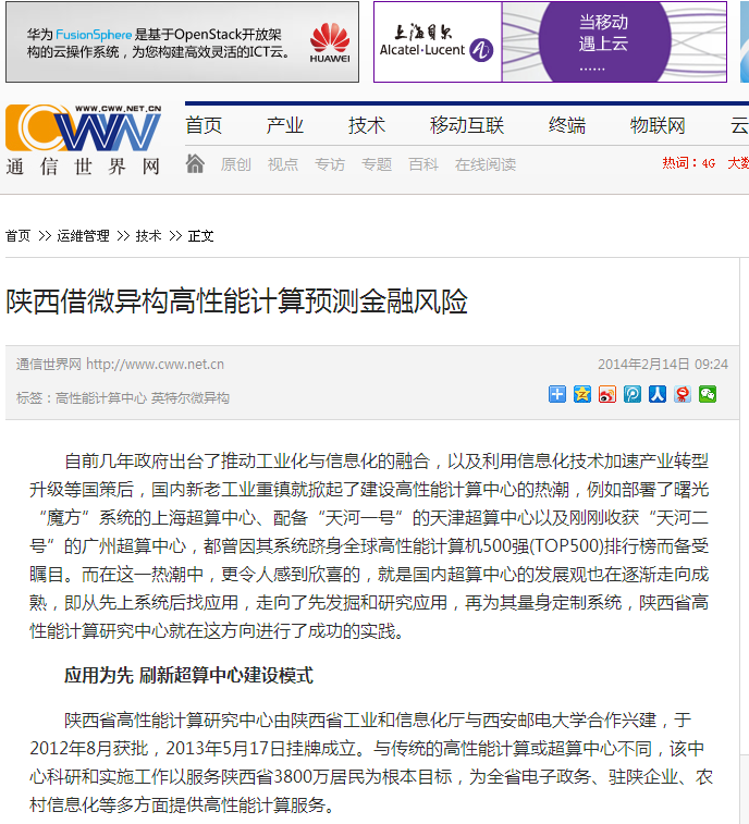 从这一主旨出发,陕西省高性能计算研究中心自建立起,就在不断致力于将创新计算力转变为服务民生的重要助推力。作为多年致力于金融领域信息化研究的专家,周晓辉教授领导该中心投入了利用高性能计算加速金融风险预测方面的研究,“金融,作为关系国计民生的重点行业,与政府企业发展密不可分也与百姓的日常生活息息相关,因此,能够做好金融风险管理相关的应用就显得尤其重要。”金融风险预测,对于高性能计算专家来说并不陌生。“可目前依靠传统CPU的运算能力,只能进行粗粒度的长期风险管理,而实现市场变化的及时反应,还需要更加高效的平台”,周晓辉希望实现的,是基于“蒙特卡洛模拟”算法,来实现金融风险控制的即时判断,甚至可以达到在一分钟内重新衡量整个投资组合的风险,为用户带来更大的便利性和实用性。拥有强大的高性能计算能力是支撑这种应用的首要条件,陕西省高性能计算中心考虑到目前的节能减排国策,还导入了对系统高能效和节能的要求,这样一来,可以选择的范围就缩小到了异构技术的范围,而英特尔的微异构技术(至强处理器+至强融核协处理器),凭借在性能、能效和软件迁移便利性三个层面上的优势,被优先选中进行了应用的测试和验证。