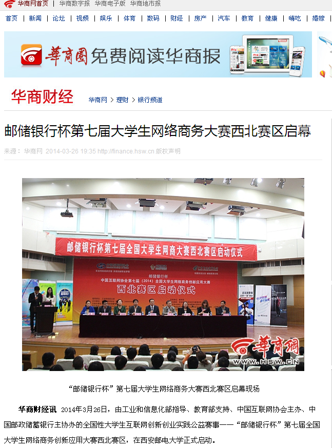 华商财经讯 2014年3月26日,由工业和信息化部指导、教育部支持、中国互联网协会主办、中国邮政储蓄银行主协办的全国性大学生互联网创新创业实践公益赛事——“邮储银行杯”第七届全国大学生网络商务创新应用大赛西北赛区,在kaiyun登录中国入口登录正式启动。